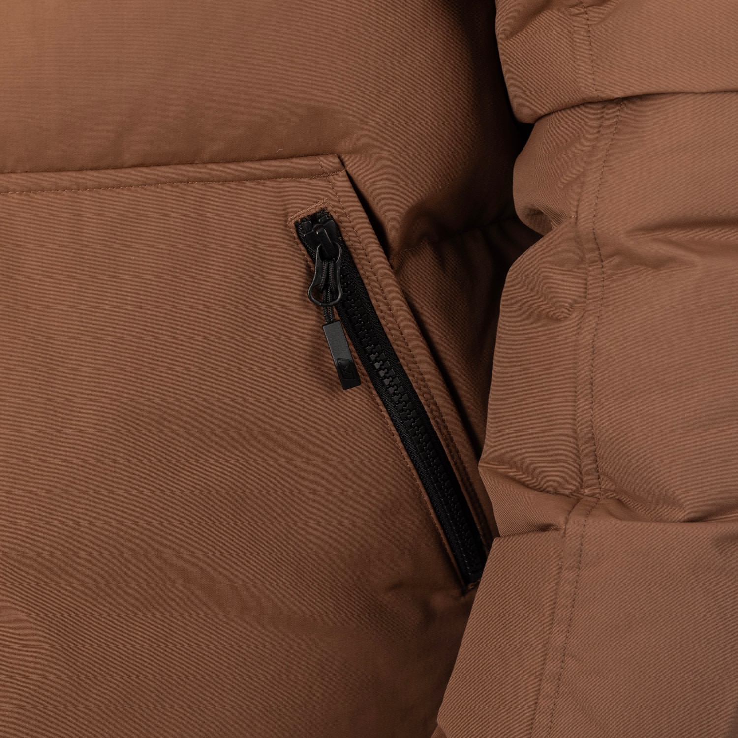 The Sawtooth Down Hooded Jacket is our warmest jacket, engineered for durability and comfort with a water- and wind-resistant finish and 600-fill-power down with traceable ALLIED Feather + Down for responsibly sourced insulation. With a five-layer construction and premium Taslan fabric, the Sawtooth is the perfect combination of rugged and comfort. The water-resistant down with ExpeDRY technology and quick-dry finish retains loft and shape even in wet conditions. Additional features include a zip-through stand-up collar and adjustable three-piece hood for custom heat-trapping comfort. Front zipper pockets and an interior zipper secure pocket deliver the complete package of style and function.