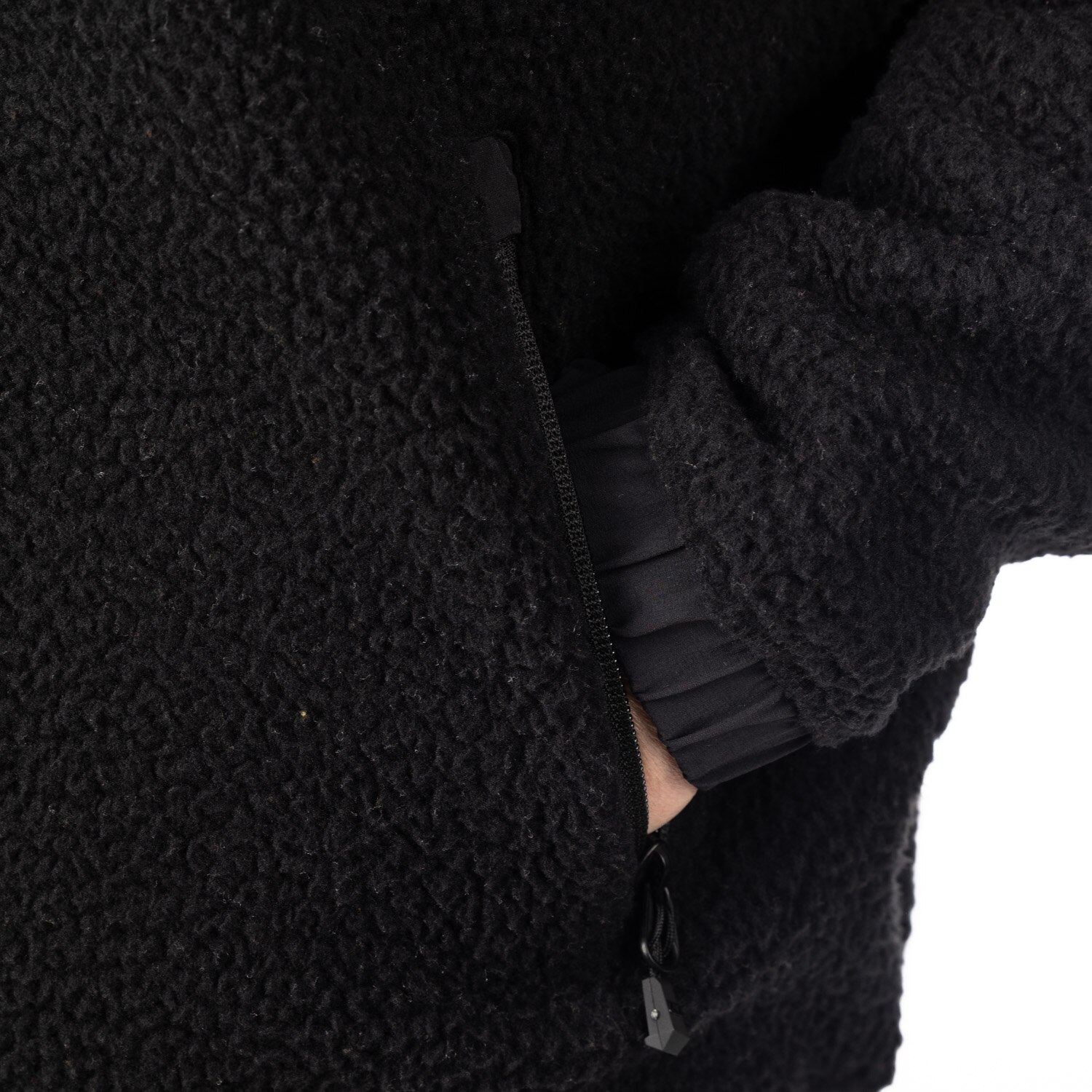 - Polyester double faced high-pile performance fleece that provides warmth without the weight, breathability and comfort